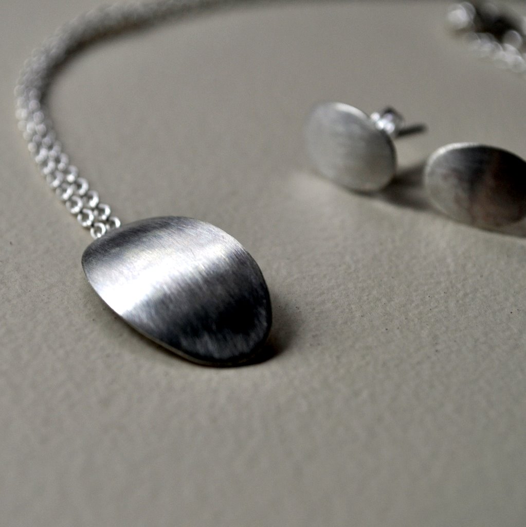 Ovals. I am seriously digging ovals at the moment – they feature heavily in the new range. Here are the Convex Oval Stud Earrings, and below is the matching necklace.