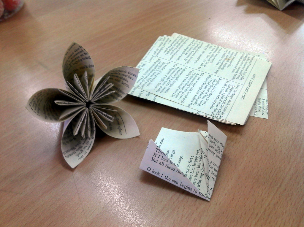Debbie was making kusudama’s, and she gave me one to keep, as well as a square with the folds in it so I can make some for myself!