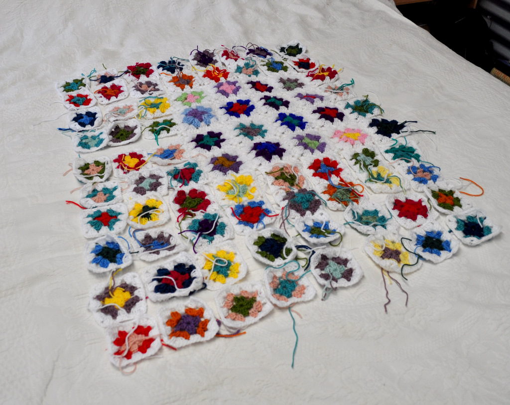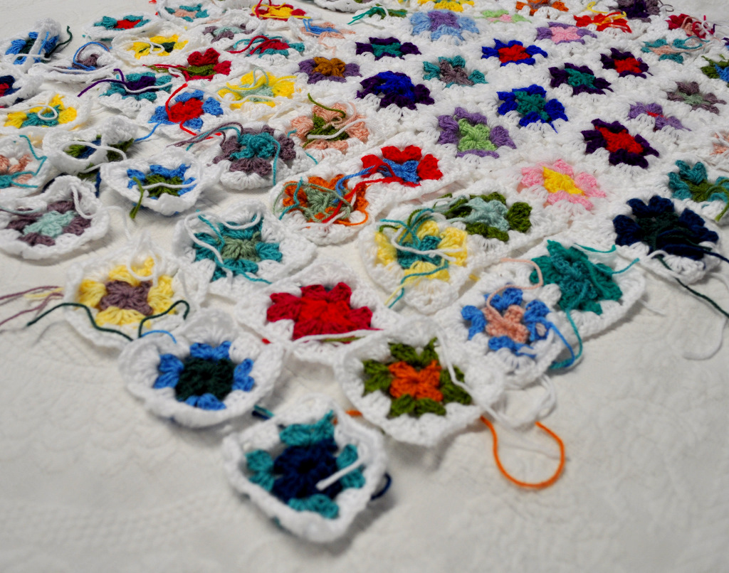 I made some progress towards finishing the 400(!!) granny squares I need for my ‘white and bright’ blanket (I swear, I’ll have it done by the time we build our house… that gives me a good few years).